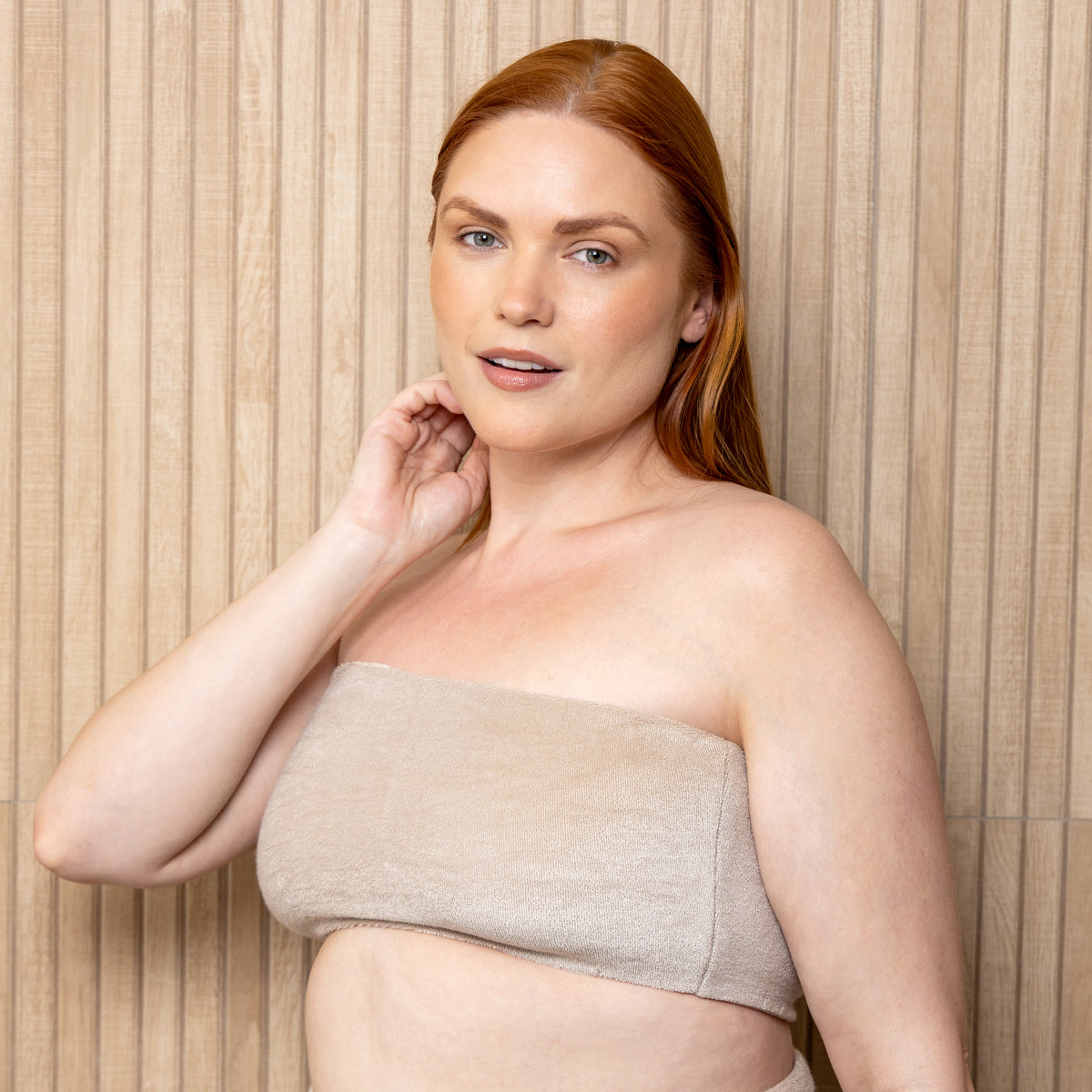 Our Toob (as in boob) Top Towels are reversible and made with the same luxury modal fabrics as our big sis, the Ta-Ta Towel.