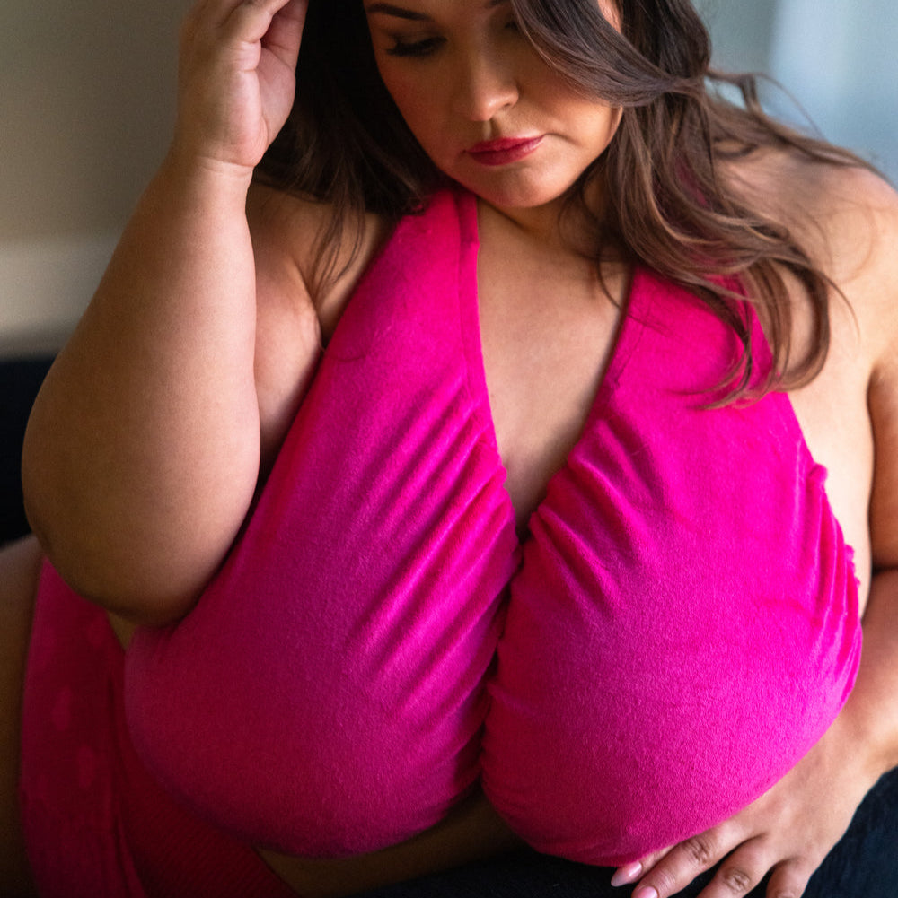 WARNING: Ta-Ta Towels are a halter-style lounge bra that goes around the back of your neck. If you have any neck issues or discomfort when wearing halter-style type apparel then we suggest purchasing the ToobTop instead.